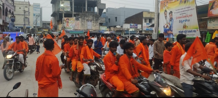 హనుమాన్ దీక్ష పరులు, విశ్వహిందూ పరిషత్, బజరంగ్ దళ్, ఆర్ఎస్ఎస్, ఏబీవీపీ నాయకుల కార్యకర్తల ఆధ్వర్యంలో క్షేత్రంలో వందలాది భారీ ద్విచక్ర వాహనాల ర్యాలీ నిర్వహించారు. ర్యాలీ ముందు వరుసలో ఓ వాహనంలో హనుమాన్ విగ్రహాన్ని ఏర్పాటుచేసి ర్యాలీ నిర్వహించారు.