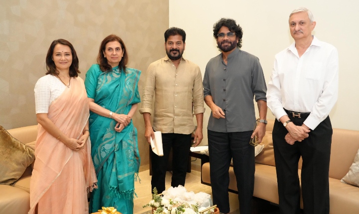 ముఖ్యమంత్రి . రేవంత్ రెడ్డిని జూబ్లీహిల్స్ నివాసంలో సినీ నటుడు అక్కినేని నాగార్జున కలిశారు. కుటుంబ సమేతంగా కలిసిన నాగార్జున తన కుమారుడు అఖిల్ వివాహ వేడుక ఆహ్వానాన్ని ముఖ్యమంత్రి కి అందించారు.
