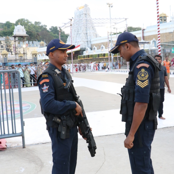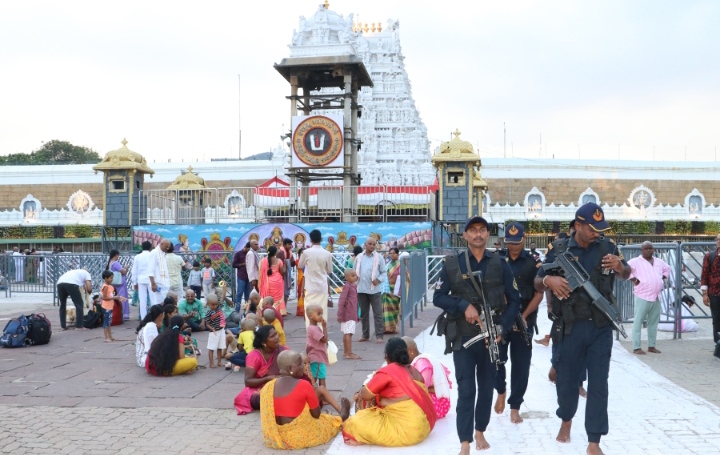 భారత్, పాకిస్తాన్ మధ్య యుద్ధ వాతావరణం నెలకొనివున్న నేపథ్యంలో శుక్రవారం తిరుమలలో భారీ భద్రత చర్యలు చేపట్టారు. తిరుమల క్షేత్రాన్ని భద్రతా దళాల ఆధీనంలో పర్యవేక్షిస్తున్నారు.
