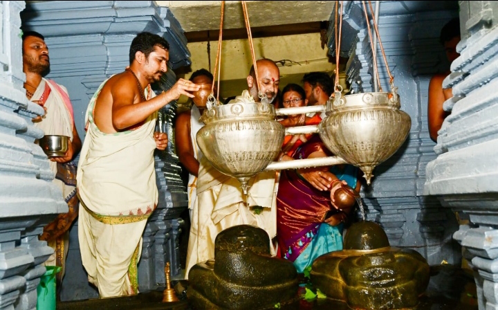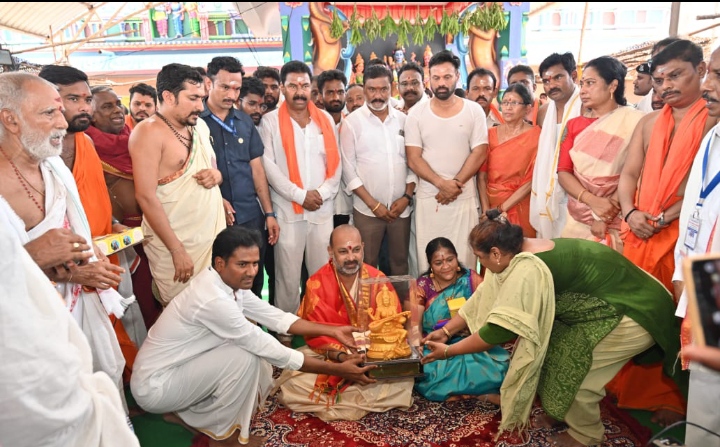 సోమవారం మధ్యాహ్నం కేంద్ర మంత్రి బండి సంజయ్ సతీమణి బండి అపర్ణతో కలిసి కాళేశ్వరం విచ్చేశారు. జిల్లా కలెక్టర్, ఎస్పీ, ఉన్నతాధికారులు కేంద్ర మంత్రికి ఘన స్వాగతం పలికారు. ఈ సందర్భంగా కేంద్ర మంత్రి పోలీస్ వందనాన్ని స్వీకరించారు. అనంతరం పండితుల వేద మంత్రోచ్చారణల మధ్య బండి సంజయ్ దంపతులు సరస్వతి నదీమ తల్లి పుష్కర స్నానాన్ని ఆచరించారు.
