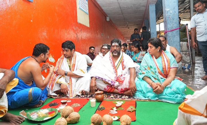 స్వామివారి దర్శనం కు ముందుగా సరస్వతి పుష్కరాల్లో భాగంగా ఉదయం కాళేశ్వరము లో సరస్వతి ఘాట్ లో సోదరుడు మల్లు ప్రసాద్ తో కలిసి డిప్యూటీ సీఎం పెద్దలకు పిండప్రదానం చేశారు.