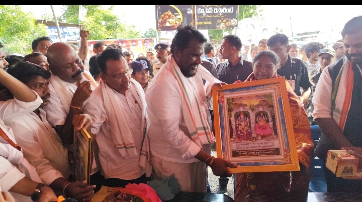 మంచిర్యాల్ జిల్లా నుంచి మంత్రి సీతక్క కాన్వాయ్ ధర్మపురి నియోజకవర్గంలో రాయపట్నం గ్రామం వద్దకు చేరుకోగానే మంత్రి వాహనం దిగింది. ఎమ్మెల్యే లక్ష్మణ్ కుమార్, శ్రీ లక్ష్మీనరసింహస్వామి, చిత్రపటాన్ని మంత్రికి బహుకరించి స్వామి ప్రసాదం అందించారు. భారీ సంఖ్యలో కాంగ్రెస్ నాయకులు, కార్యకర్తలు, కాంగ్రెస్ కండువాలు అందించారు.