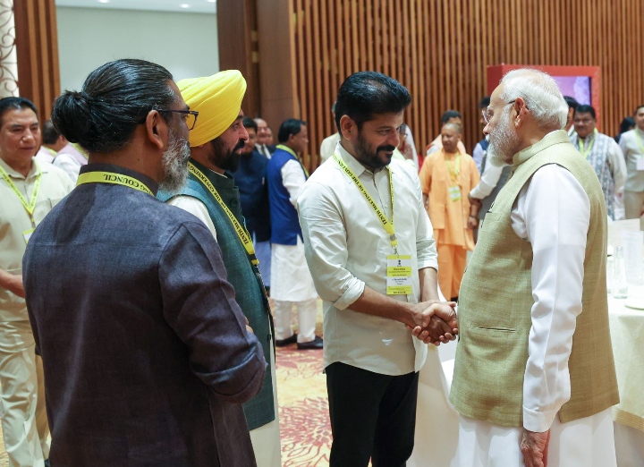 👉 “నేషన్ ఫస్ట్ – పీపుల్ ఫస్ట్” అన్న ప్రాధాన్యతతో ముందుకు వెళుతున్నాం. ఈ దేశం రాష్ట్రాల సమాఖ్య. కేంద్రం సహాయ సహకారం మద్దతు లేకుండా తెలంగాణ రైజింగ్ విజన్ అమలు చేయలేం. తెలంగాణ సమగ్రాభివృద్ధికి సహకరించండి, వికసిత భారత్ లక్ష్య సాధనలో తెలంగాణ మొదటి వరుసలో ఉంటుందని మాట ఇస్తున్నాను..’ అని సీఎం రేవంత్ రెడ్డి తన ప్రసంగాన్ని ముగించారు.