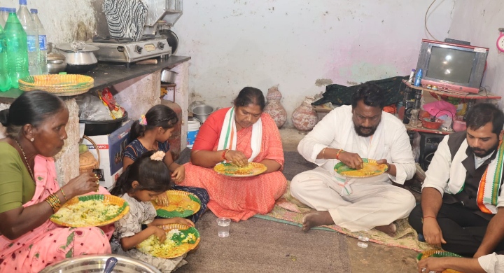 మంత్రి సీతక్క, ఎమ్మెల్యే, ఎంపీ దళిత ఇంటిలో భోజనం!