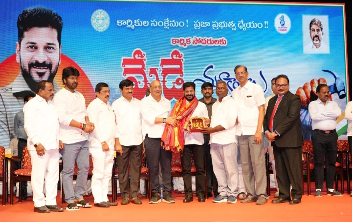 👉 ప్రపంచ కార్మిక దినోత్సవం మే డే సందర్భంగా గురువారం తెలంగాణ కార్మిక శాఖ ఆధ్వర్యంలో రవీంద్రభారతిలో ఏర్పాటు చేసిన కార్యక్రమంలో ముఖ్యమంత్రి పాల్గొన్నారు. ఈ సందర్భంగా కార్మిక సోదరులందరికీ ముఖ్యమంత్రి మేడే శుభాకాంక్షలు తెలియజేశారు.