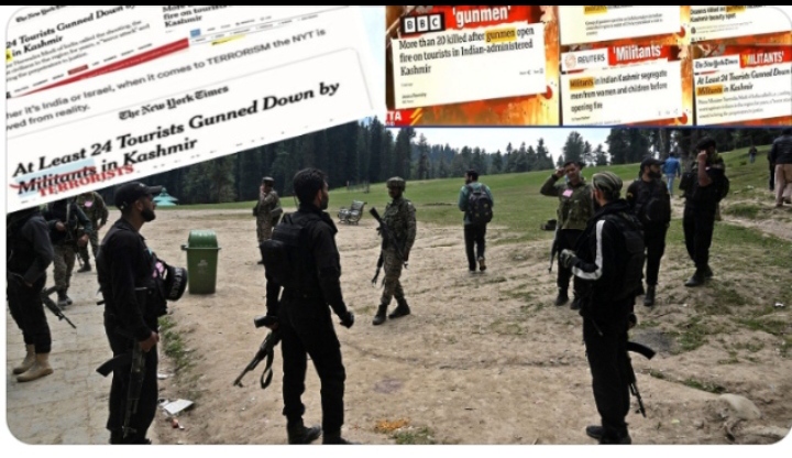 కొన్నిచోట్ల అల్ జెజీరా ‘‘తిరుగుబాటు దారులు’’ అని పేర్కొంది. ఈ ఉగ్రవాదుల దాడిని ‘‘కాల్పులు’’, ‘‘దాడి’’ లేదా ‘‘పర్యాటకులపై అరుదైన దాడి’’గా పాశ్చాత్య మీడియా అభివర్ణించింది. ఇదొక ఉగ్రవాద మన్న దృక్పథంతో ఈ మీడియా సంస్థలు రాయక పోవడం విచారకరం. యాదృచ్ఛికంగా ఇటువంటి భాషా ప్రయోగం చేశారనుకోవడం అమాయకత్వమే. ఎందుకంటే దాడికి పాల్పడిన ముష్కరుల గుర్తింపును, మరణించిన హిందువుల గుర్తింపును వెల్లడి చేయకుండా సంఘటన తీవ్రతను కావాలనే తక్కువ చేసి చూపడం ఇక్కడ స్పష్టంగా కనిపిస్తోంది.