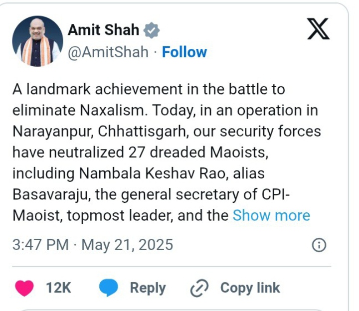 👉భద్రత బలగాలు గొప్ప విజయం సాధించాయి . అమిత్ షా !
