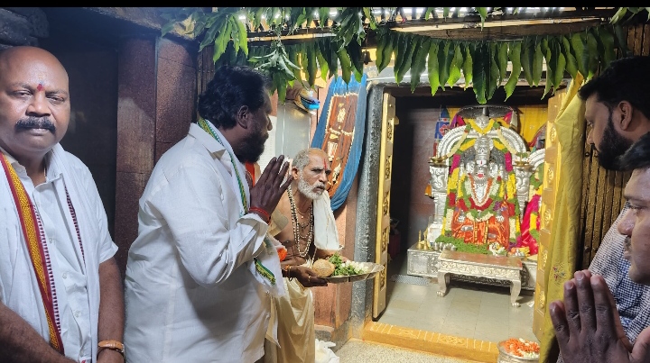 ధర్మపురి శ్రీ లక్ష్మీనరసింహస్వామిని ఎస్సీ ఎస్టీ మైనార్టీ సంక్షేమ శాఖ మంత్రి అడ్డూరి లక్ష్మణ్ కుమార్ , శనివారం దర్శించుకుని ప్రత్యేక పూజలు చేశారు. సంకష్ట చతుర్థి సందర్భంగా శివాలయంలోని శ్రీ ఈశాన్య గణపతి కి అభిషేకం ప్రత్యేక పూజాది కార్యక్రమాలలో మంత్రి పాల్గొన్నారు.