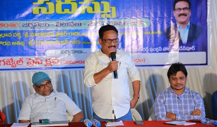 గజ్వేల్ ప్రెస్ క్లబ్ 25 ఏళ్ల వేడుక సందర్భంగా జగదేవపూర్ మండల కేంద్రంలోని కేశిరెడ్డి ప్రవీణ్ రెడ్డి గార్డెన్స్ లో “జర్నలిస్టులు-విలువలు-పౌర సమాజం పాత్ర” అనే అంశంపై నిర్వహించిన సదస్సులో ఆయన ప్రధాన వక్తగా పాల్గొన్నారు.