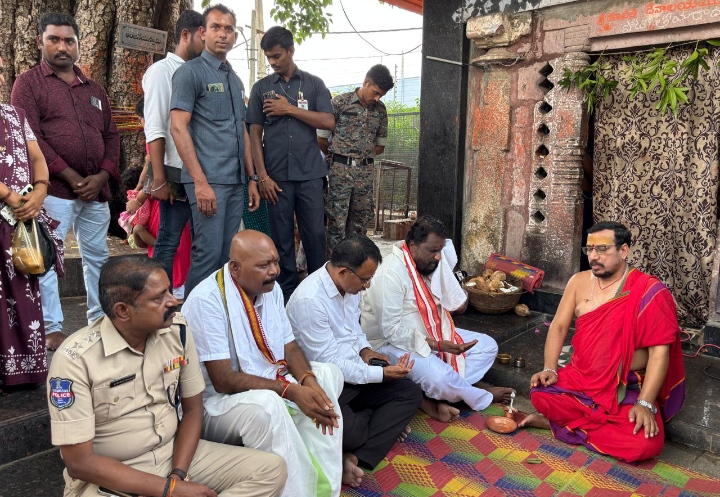 సామాన్య భక్తుడిలా శ్రీ లక్ష్మీ నరసింహ స్వామిని దర్శించుకొని, శివాలయ ప్రాంగణంలో ఈశాన్య గణపతి ఆలయంలో జరిగిన సంకష్ట చతుర్థి పూజలో మంత్రి లక్ష్మణ్ కుమార్ సామాన్య భక్తుడిగా నేలపై కూర్చున్నారు.