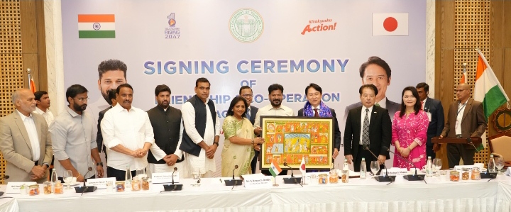 👉 ఈ సందర్భంగా పర్యావరణ పరిరక్షణ, వ్యర్థాల నిర్వహణ, రీసైక్లింగ్ వంటి రంగాల్లో కిటాక్యుషు సహాకారం కోసం ముఖ్యమంత్రి సమక్షంలో తెలంగాణ ప్రభుత్వం అవగాహన ఒప్పందంపై సంతకాలు చేశాయి. గత ఏప్రిల్లో జపాన్ పర్యటనలో భాగంగా ముఖ్యమంత్రి కిటాక్యూషు నగరాన్ని సందర్శించిన సందర్భంగా ఆ నగర మేయర్ కజుహిసా టెక్యూచి తో సమావేశమైనప్పుడు పర్యావరణ పరిరక్షణకు సంబంధించి పలు సంస్థలతో లెటర్స్ ఆఫ్ ఇంటెంట్ (LOI) కుదుర్చుకున్నారు.