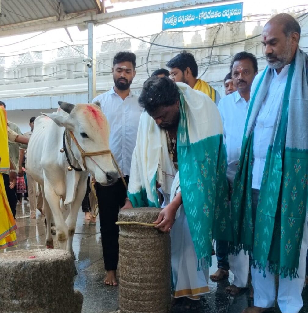 ఈ సందర్భంగా కోడె మొక్కుల చెల్లించి స్వామి వారిని దర్శించుకొని ప్రత్యేక పూజలు నిర్వహించారు.అనంతరం ఆలయ అర్చకులు అధికారులు స్వామి వారి తీర్థ ప్రసాదాలను వారికి అందజేసి శాలువాతో సన్మానించారు.