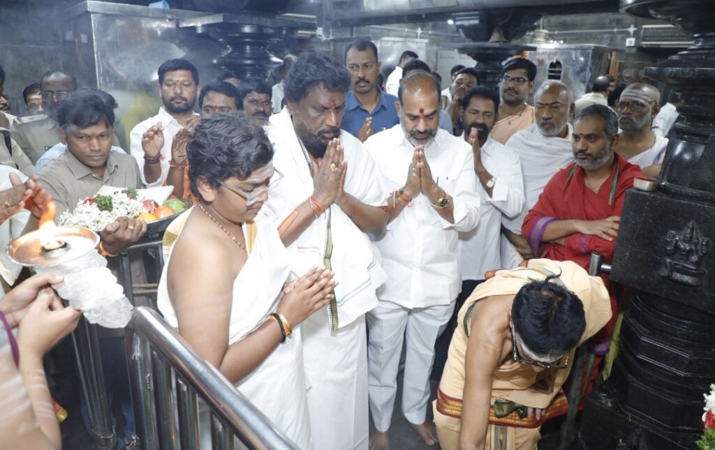ఎస్సీ ఎస్టీ మైనార్టీ వికలాంగుల సంక్షేమ శాఖ మంత్రి అడ్లూరి లక్ష్మణ్ కుమార్ సోమవారం ఉదయం దర్శించుకుని ప్రత్యేక పూజలు చేశారు.