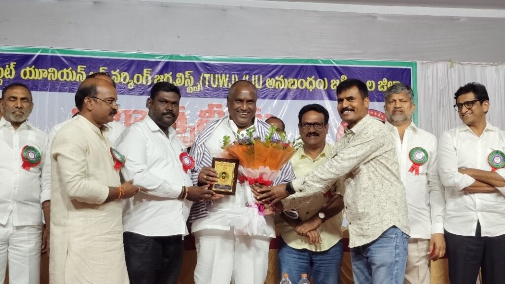 జగిత్యాల జిల్లా కేంద్రం సుమంగళి గార్డెన్స్లో మంగళవారం జరిగిన తెలంగాణ స్టేట్ యూనియన్ ఆఫ్ వర్కింగ్ జర్నలిస్టుల జిల్లా 3వ మహాసభ కు ముఖ్య అతిథిగా మంత్రి అడ్లూరి లక్ష్మణ్ కుమార్ పాల్గొన్నారు.
