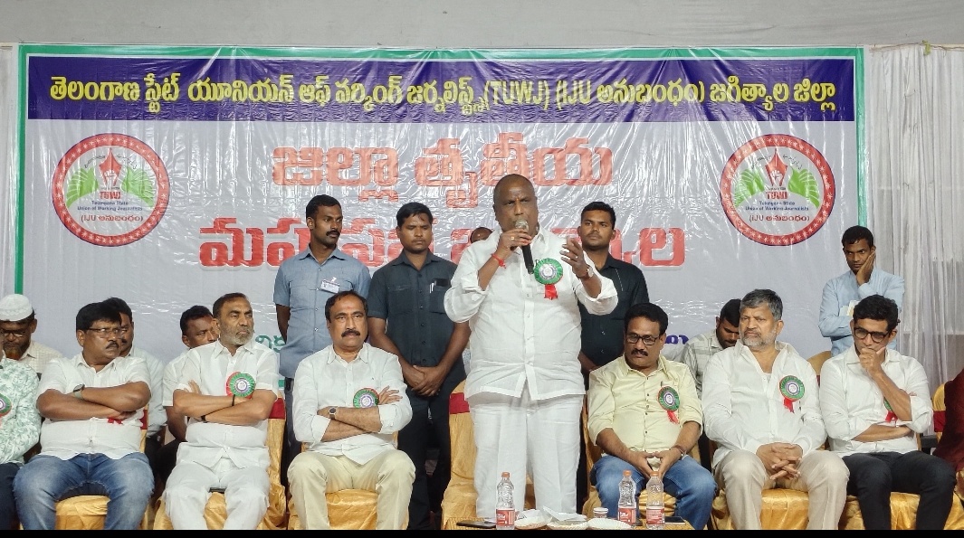 జగిత్యాల జిల్లా కేంద్రం సుమంగళి గార్డెన్స్లో మంగళవారం జరిగిన తెలంగాణ స్టేట్ యూనియన్ ఆఫ్ వర్కింగ్ జర్నలిస్టుల జిల్లా 3వ మహాసభ కు ముఖ్య అతిథిగా మంత్రి అడ్లూరి లక్ష్మణ్ కుమార్ పాల్గొన్నారు.