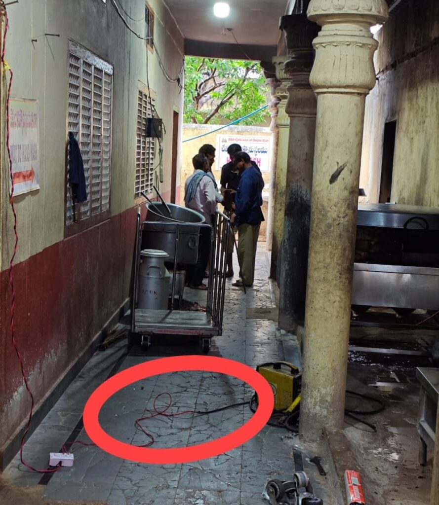 మధ్యాహ్నం ఉచిత అన్నదానం కోసం వందలాది మంది భక్తులు సంఘటన జరిగిన కారిడార్ నుండి భోజనానికి లోనికి వెళ్తారు. మధ్యాహ్నం విద్యుత్ ప్రమాదం జరిగితే పరిస్థితి ఏమిటి అనే చర్చ జరుగుతున్నది.