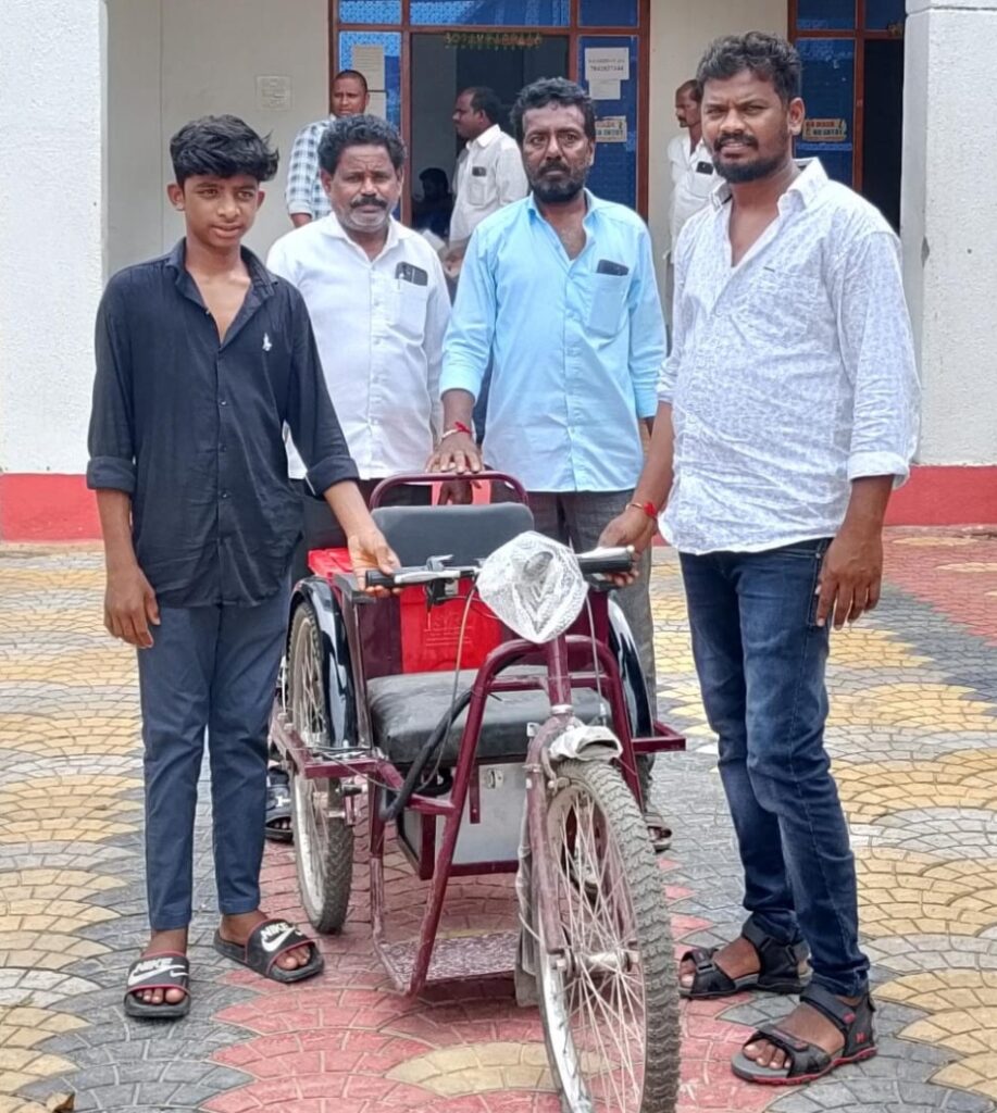 బ్యాటరీ సైకిల్ లేక ఇబ్బంది పడుతున్న విషయాన్ని మంత్రి అడ్లూరి లక్ష్మణ్ కుమార్ , దృష్టికి తీసుకెళ్లగా వెంటనే స్పందించి జిల్లా అధికారులతో మాట్లాడి బ్యాటరీ సైకిల్ బుధవారం మంజూరు చేయించారు.