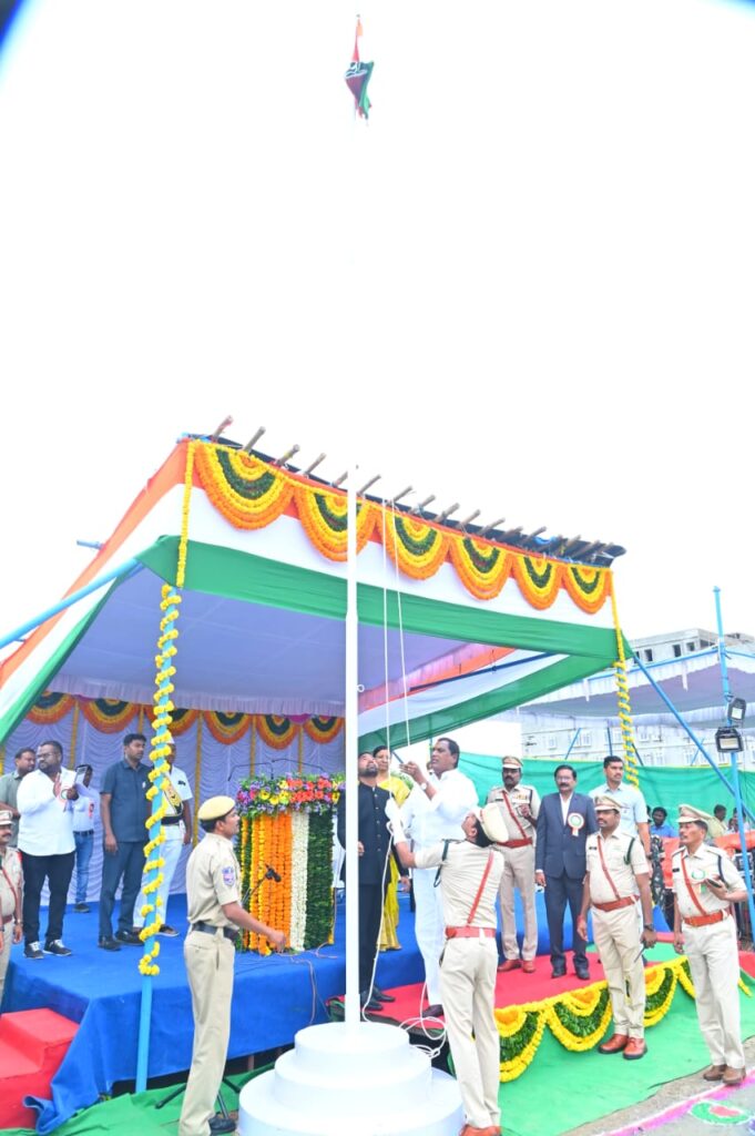 జగిత్యాల జిల్లా కేంద్రంలోని పోలీస్ గ్రౌండ్ లో 79 వ స్వాతంత్య్ర దినోత్సవ వేడుకలు శుక్రవారం ఘనంగా జరిగాయి. రాష్ట్ర ఎస్సీ, ఎస్టీ, మైనారిటీ సంక్షేమ శాఖ మంత్రి అడ్లూరి లక్ష్మణ్ కుమార్ ముఖ్యతిగా పాల్గొని జాతీయ పతాకాన్ని ఆవిష్కరించారు.