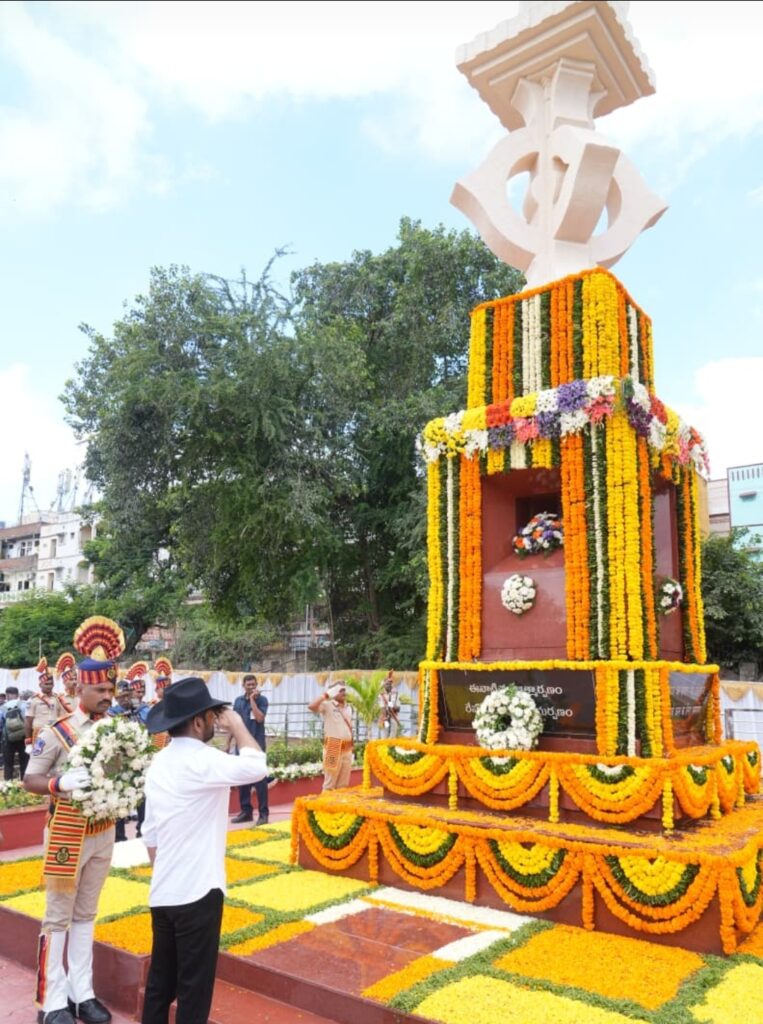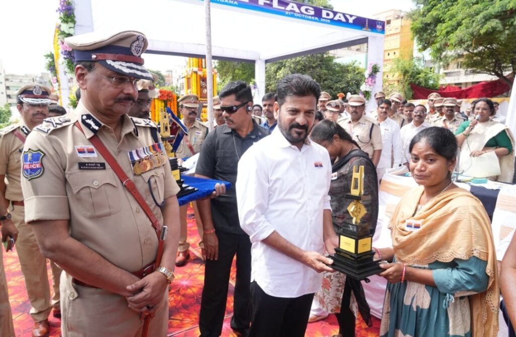 👉 పోలీసు అమరవీరుల సంస్మరణ దినం సందర్భంగా మంగళవారం రాష్ట్ర పోలీసు శాఖ గోషామహల్లో నిర్వహించిన పోలీస్ ఫ్లాగ్ డే పరేడ్లో ముఖ్యమంత్రి పాల్గొన్నారు. ఈ సందర్భంగా విధి నిర్వహణలో ప్రాణాలు కోల్పోయిన పోలీసు అమర వీరులను స్మరిస్తూ వారికి శ్రద్ధాంజలి ఘటించారు.