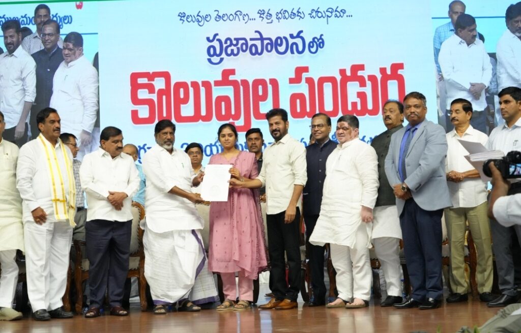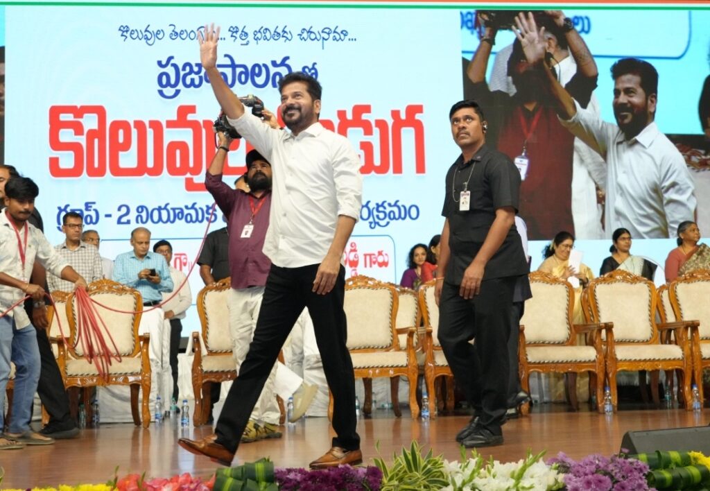 👉 శిల్పకళా వేదికలో ఏర్పాటు చేసిన “ప్రజాపాలనలో కొలువుల పండుగ” కార్యక్రమంలో భాగంగా గ్రూప్ –2 సర్వీసులకు ఎంపికైన 783 మంది అభ్యర్థులకు ముఖ్యమంత్రి చేతుల మీదుగా లాంఛనంగా నియామక పత్రాల అందజేశారు.