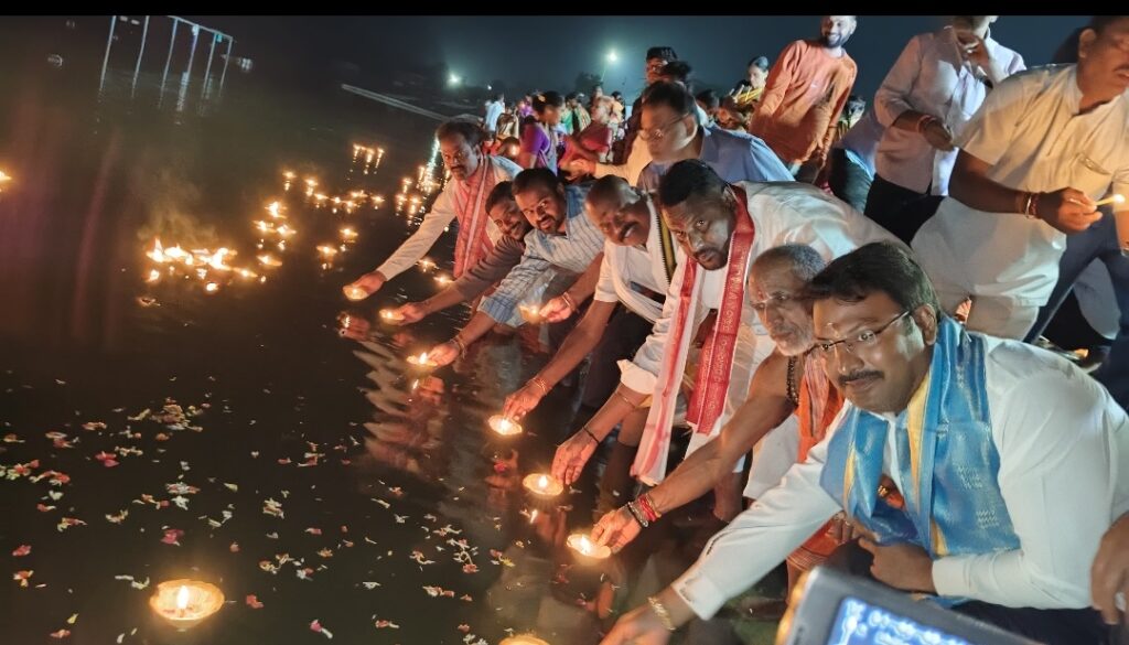 పవిత్ర కార్తిక మాసం పురస్కరించుకొని ధర్మపురి పట్టణ కేంద్రంలోని గోదావరి నదీ తీరంలో శ్రీ లక్ష్మీనరసింహస్వామి దేవస్థానం ఆధ్వర్యంలో మంగళవారం నిర్వహించిన గోదావరి హారతి కార్యక్రమంలో రాష్ట్ర సంక్షేమ శాఖ మంత్రి అడ్లూరి లక్ష్మణ్ కుమార్ పాల్గొన్నారు.