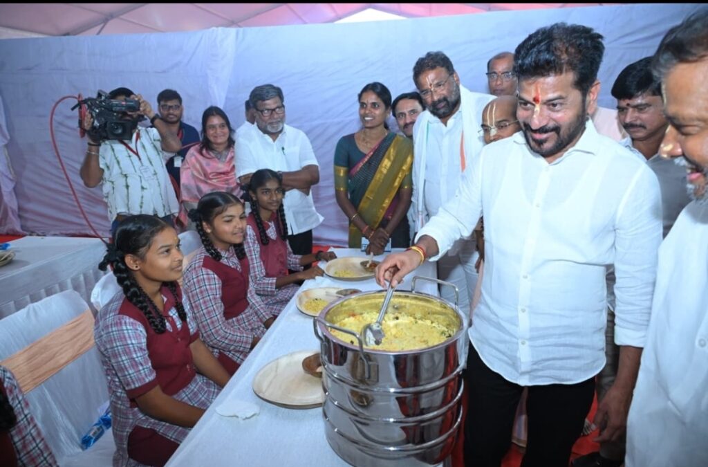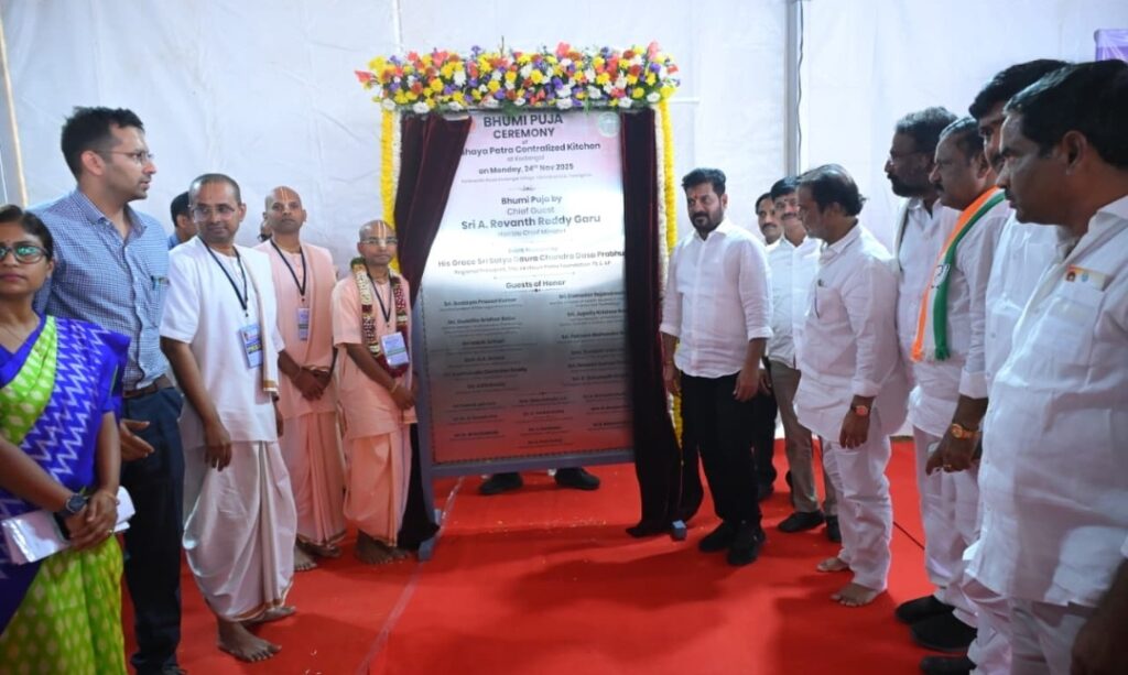 👉 ముఖ్యమంత్రి సోమవారం కొడంగల్ నియోజకవర్గంలో పర్యటించారు. కొడంగల్లో హరేకృష్ణ సంస్థ (HKM) వారి ఆధునిక అల్పాహార వంటశాల (సెంట్రలైజ్డ్ కమ్యూనిటీ కిచెన్) ను పరిశీలించారు. అనంతరం అక్షయపాత్ర ఫౌండేషన్ (Akshaya Patra Foundation) ఆధ్వర్యంలో మిడ్ డే కిచెన్ భవనానికి భూమి పూజ నిర్వహించారు.