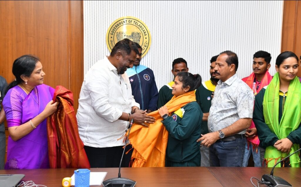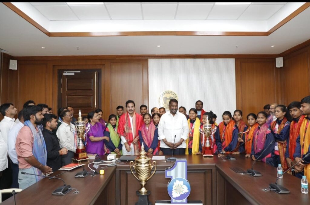 నేషనల్ స్పోర్ట్స్ మీట్–2025 లో230 పతకాలతో రాష్ట ప్రతిష్టను ప్రపంచానికి చాటిన తెలంగాణ గిరిజన ఏకలవ్య విద్యాసంస్థల విద్యార్థులను మంత్రి అడ్లూరి లక్ష్మణ్ కుమార్ గురువారం హైదరాబాద్ సచివాలయంలో ఘనంగా సన్మానించారు.