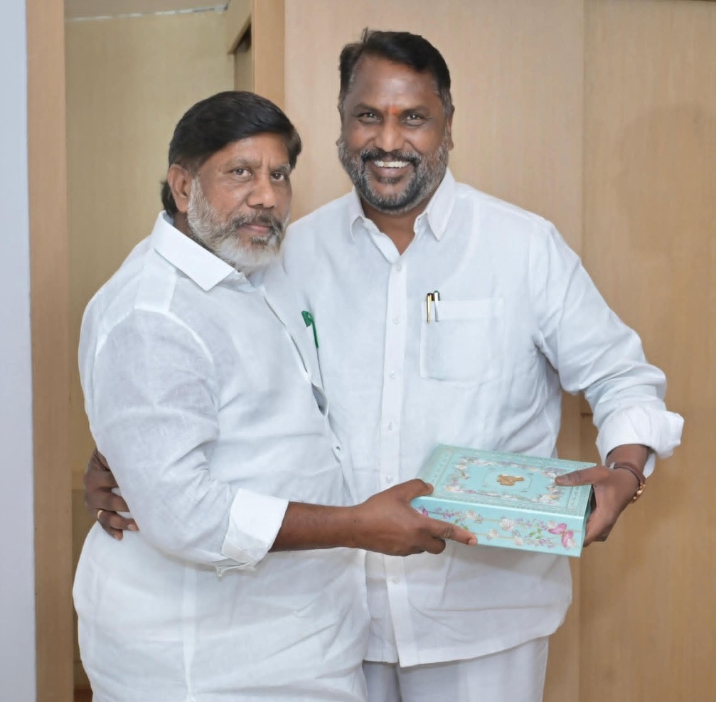 డిప్యూటీ సీఎం మల్లు భట్టి విక్రమార్క మంగళవారం సంక్షేమ శాఖ మంత్రి అడ్లూరి లక్ష్మణ్ కుమార్ ను కలిశారు. ఈ నెల 26న జరుగనున్న తన కుమారుడు మల్లు సూర్య విక్రమాదిత్య నిశ్చితార్థానికి కుటుంబ సమేతంగా రావాల్సిందిగా మంత్రి లక్ష్మణ్ కుమార్ ను ఆహ్వానించారు.