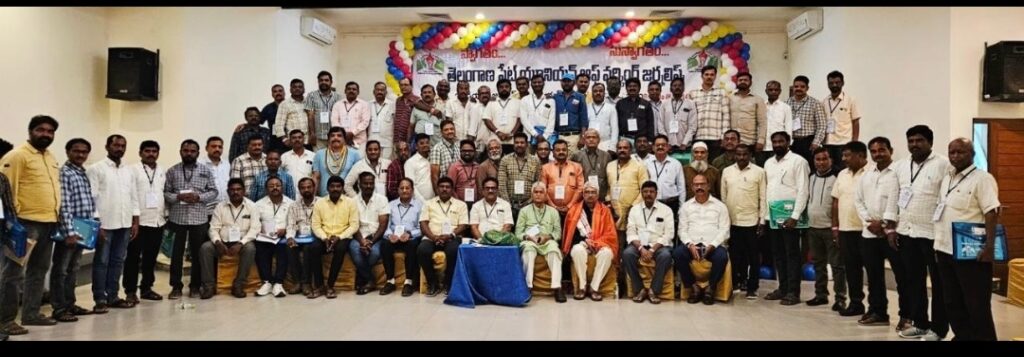 రంగారెడ్డి జిల్లా శంకర్ పల్లి మండలంలోని పొద్దటూరులో గురువారం ప్రగతి రిసార్ట్స్ లో యూనియన్ రాష్ట్ర అధ్యక్షులు కే. విరాహత్ అలీ అధ్యక్షతన జరిగిన రాష్ట్ర విస్తృత స్థాయి కార్యవర్గ సమావేశంలో, జర్నలిస్టుల ప్రధాన సమస్యలు, వాటి పరిష్కారంలో ప్రభుత్వం నుండి జరుగుతున్న జాప్యం పై కార్యవర్గం చర్చించింది. ప్రస్తుత ప్రభుత్వం అధికారాన్ని చేపట్టి దాదాపు రెండేళ్లు కావస్తున్నా, జర్నలిస్టుల సమస్యల పరిష్కారంపై దృష్టి సారించక పోవడం విచారకరమని సమావేశం అభిప్రాయపడింది.