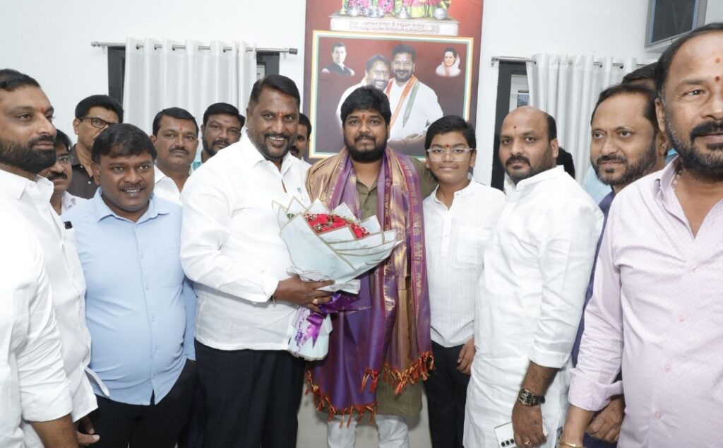 జూబ్లీహిల్స్ ఎన్నికల్లో కాంగ్రెస్ అభ్యర్థి నవీన్ కుమార్ యాదవ్ విజయానికి కీలక భూమిక పోషించిన ఎస్సీ,ఎస్టీ, దివ్యాంగుల సంక్షేమ శాఖ మంత్రి అడ్లూరి లక్ష్మణ్ కుమార్ కు కృతజ్ఞతలు ఆదివారం హైదరాబాదులో మంత్రి క్యాంపు కార్యాలయానికి ఎమ్మెల్యే నవీన్ యాదవ్ వచ్చారు.