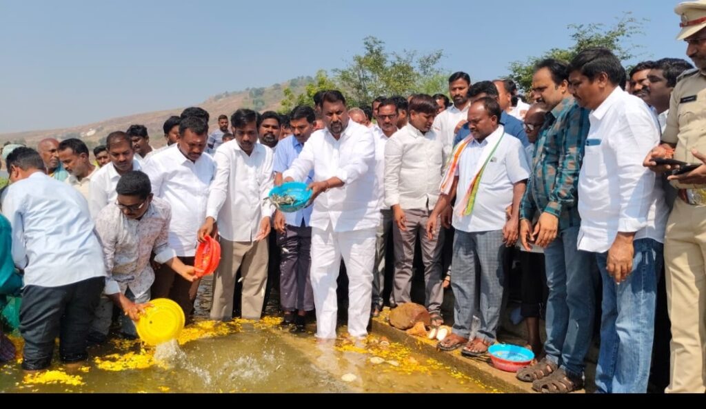 ప్రభుత్వం ఆధ్వర్యంలో 100% సబ్సిడీపై ఉచిత చేప పిల్లలను మంత్రి అడ్లూరి లక్ష్మణ్ కుమార్, బుధవారం ,వెల్గటూర్ మండలం స్థంభం పల్లి గ్లోని కంపెల్లి చెరువులో 48,500 చేప పిల్లలను నేరుగా విడిచి ప్రారంభించారు. ఈ కార్యక్రమం లో అదనపు కలెక్టర్ ( స్థానిక సంస్థల )బి. రాజ గౌడ్ పాల్గొన్నారు.