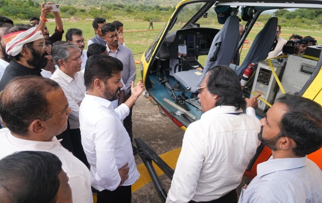 👉 సర్వే చేపట్టే విధానంపై శాస్త్రవేత్తలు వివరించిన అనంతరం ముఖ్యమంత్రి సర్వే నిర్వహణకు హెలికాప్టర్ టేక్ఆఫ్ కోసం అనుమతించారు. ఆ హెలికాప్టర్ వెంట ముఖ్యమంత్రి, మంత్రులతో కలిసి మరో హెలికాప్టర్లో కొంత దూరం ప్రయాణించి లోలెవల్లో జరిగే ఎక్సర్సైజ్ను పరిశీలించారు.