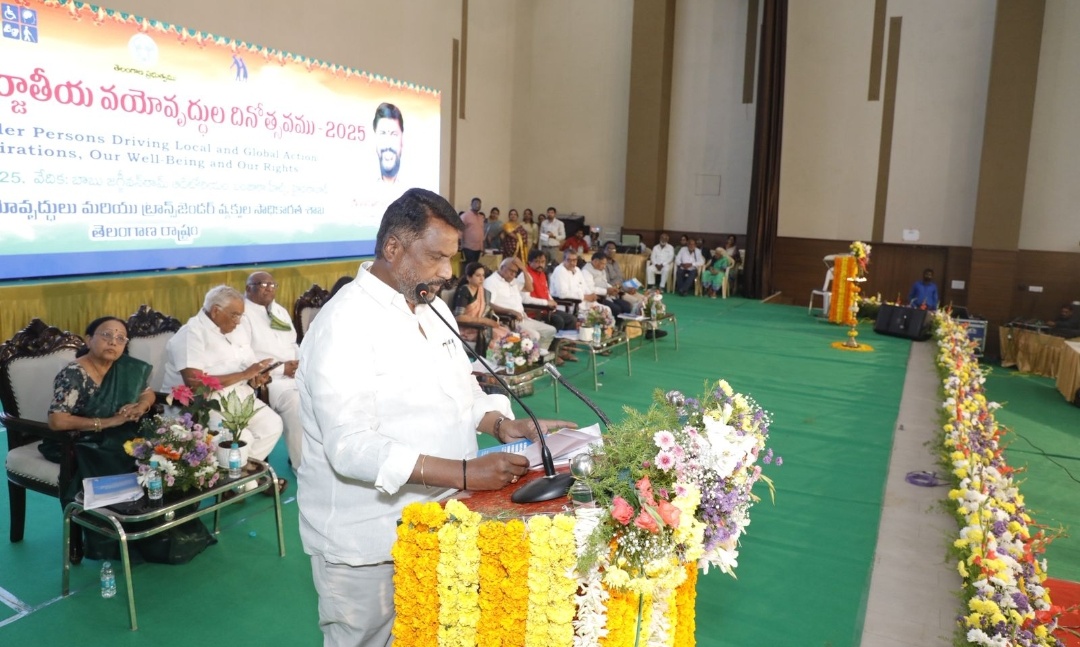 అంతర్జాతీయ వయోవృద్ధుల దినోత్సవం సందర్భంగా హైదరాబాదులోని బాబు జగ్జీవన్ రామ్ ఆడిటోరియంలో బుధవారం వయోవృద్ధుల మరియు ట్రాన్స్జెండర్ వ్యక్తుల సాధికారత శాఖ ఆధ్వర్యంలో ప్రత్యేక కార్యక్రమం నిర్వహించారు. ఈ వేడుకకు మంత్రి అడ్లూరి లక్ష్మణ్ కుమార్ ముఖ్య అతిథిగా హాజరై జ్యోతి వెలిగించి కార్యక్రమాన్ని ప్రారంభించారు.