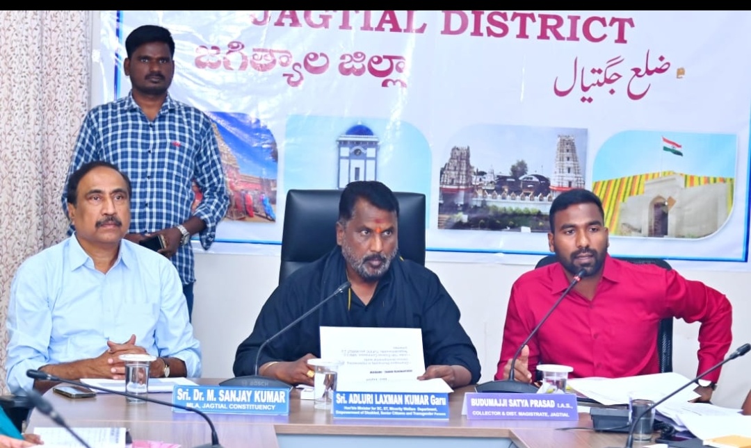 ధర్మపురి, జగిత్యాల మరియు రాయికల్ మున్సిపాలిటీ పరిధుల్లో పలు పథకాలపై జరుగుతున్న అభివృద్ధి పనులపై మంత్రి అడ్లూరి లక్ష్మణ్ కుమార్, జగిత్యాల శాసనసభ్యులు సంజయ్ కుమార్ మరియు జిల్లా కలెక్టర్ బి. సత్య ప్రసాద్ లతో కలిసి శనివారం కలెక్టరేట్ లో సమీక్ష సమావేశం నిర్వహించారు.