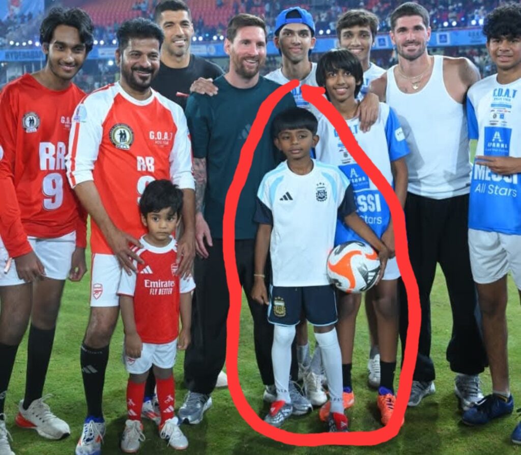ప్రపంచ పుట్బాల్ దిగ్గజం, అర్జెంటినా కెప్టెన్ లియోనెల్ మెస్సీ తో జగిత్యాల జిల్లా ధర్మపురి క్షేత్రానికి చెందిన కసజ్జుల మన్విత్ అనే బాలుడు మెస్సీ తో కరచాలనం చేసి ఫుట్ బాల్ ఆడాడు.