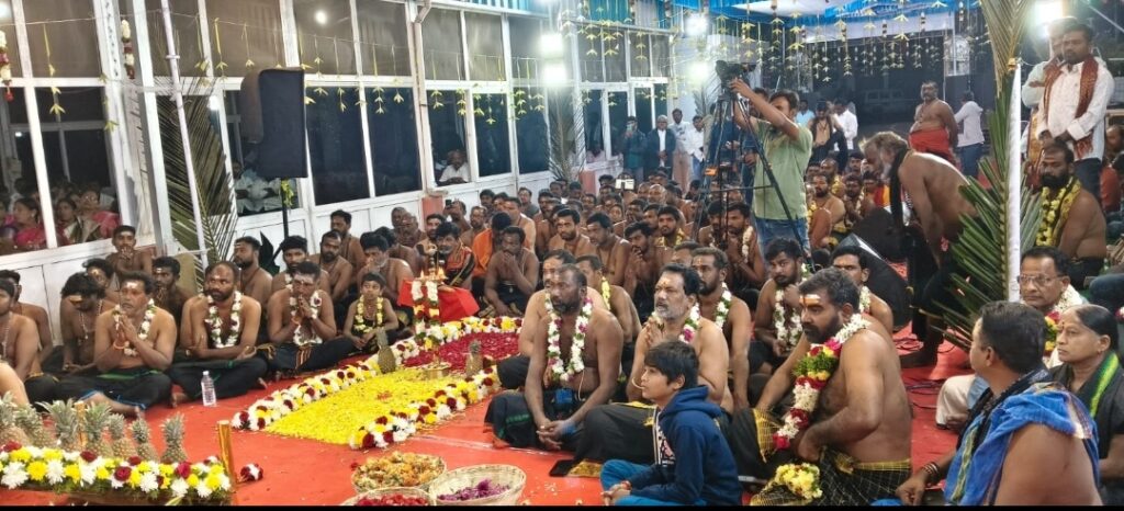 ధర్మపురి క్షేత్రానికి చెందిన పెండ్యాల బాలకృష్ణ గురుస్వామి, హైదరాబాద్ కు చెందిన మణికంఠ శర్మ గురుస్వామి, వారి శిష్య బృందంతో అయ్యప్ప మెట్ల పూజ వేద మంత్రాలతో నిర్వహించారు. మంత్రి లక్ష్మణ్ కుమార్, ఆయన కుమారుడు హరీశ్వర్ లు అయ్యప్ప దీక్షలో కొనసాగుతున్నారు.