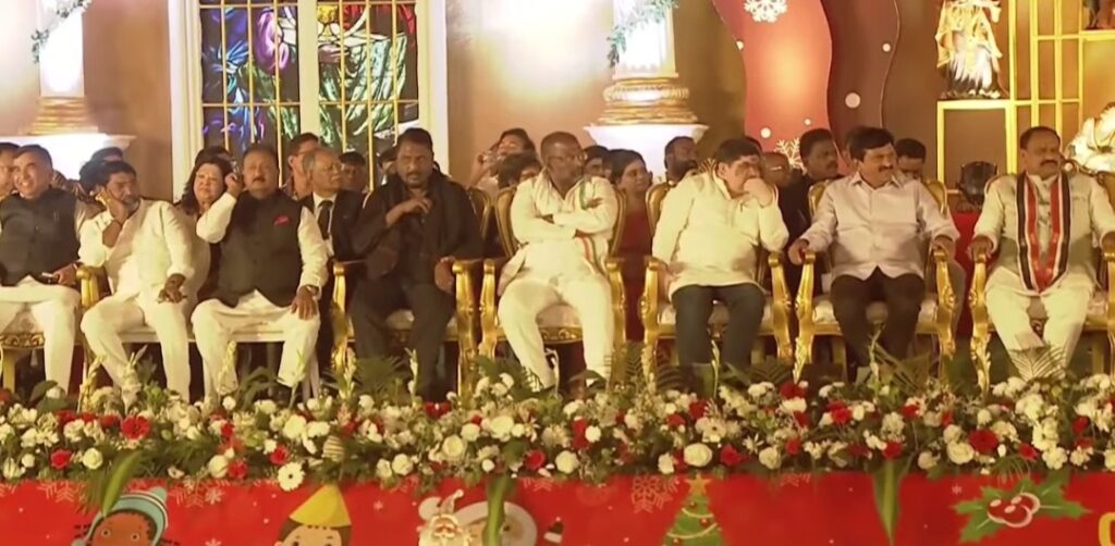 👉 హైదరాబాద్ ఎల్బీ స్టేడియంలో శనివారం రాత్రి రాష్ట్ర ప్రభుత్వం నిర్వహించిన క్రిస్మస్ వేడుకల్లో ముఖ్యమంత్రి రేవంత్ రెడ్డి, మంత్రులు పొన్నం ప్రభాకర్, పొంగులేటి శ్రీనివాస రెడ్డి , మహమ్మద్ అజారుద్దీన్, వాకిటి శ్రీహరి, అడ్లూరి లక్ష్మణ్ కుమార్, ప్రభుత్వ సలహాదారులు, ఎమ్మెల్యేలు, ఎమ్మెల్సీలు, వివిధ కార్పొరేషన్ చైర్మన్లు, ఉన్నతాధికారులు, క్రిస్టియన్ మత పెద్దలు, ప్రజాప్రతినిధులతో పాటు క్రిస్టియన్ పెద్దల సమక్షంలో కేక్ కట్ చేశారు. క్రిస్టియన్ సోదర, సోదరీమణులకు ముఖ్యమంత్రి క్రిస్మస్ శుభాకాంక్షలు, నూతన సంవత్సర శుభాకాంక్షలు తెలిపారు.