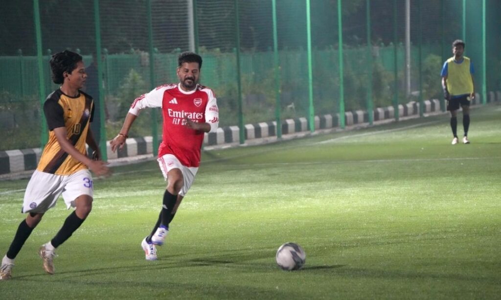 ఫుట్బాల్ ప్రాక్టీస్ చేస్తున్న సీఎం రేవంత్ రెడ్డి !