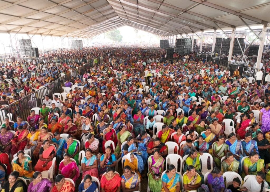 👉 రాష్ట్రంలో కోటి మంది మహిళలను కోటీశ్వరులను చేయాలన్న సంకల్పంతో మహిళాభ్యున్నతి కోసం అనేక కార్యక్రమాలు చేపట్టాం. ఉచిత బస్సు సౌకర్యం, సంఘాలకు వడ్డీ లేని రుణాలు, సోలార్ విద్యుత్ ప్లాంట్లు, పెట్రోల్ బంకులు, ఉత్పత్తుల విక్రయానికి శిల్పారామంలో ఇందిరా మహిళా శక్తి బజార్, బస్సులకు యజమానులుగా.. ఇలా అనేక పథకాలు అమలు చేస్తున్నాం.