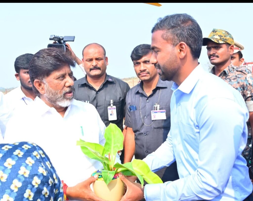 జిల్లా కాంగ్రెస్ పార్టీ అధ్యక్షుడు నందయ్య, ప్రభుత్వ విప్ శ్రీ ఆది శ్రీనివాస్, ట్రైకార్ మరియు గిరిజన కార్పొరేషన్ చైర్మన్ లు బెల్లయ్య నాయక్, తిరుపతి జగిత్యాల, పెద్దపల్లి, రామగుండం, ఎమ్మెల్యే లు సంజయ్ కుమార్, విజయ రమణ రావు, మక్కాన్ సింగ్ ఠాగూర్, జిల్లా కలెక్టర్ బి. సత్యప్రసాద్, TSNPCDL CMD వరుణ్ రెడ్డి, జిల్లా ఎస్పీ అశోక్ కుమార్ తదితరులు మంత్రులకు స్వాగతం పలికారు.