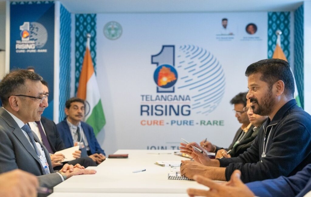 👉 దావోస్ వరల్డ్ ఎకనమిక్ ఫోరమ్లో ముఖ్యమంత్రి రేవంత్ రెడ్డితో గూగుల్ ఆసియా పసిఫిక్ ఏరియా (ఏపీఏసీ) ప్రెసిడెంట్ సంజయ్ గుప్తా సమావేశమయ్యారు. ప్రధానంగా వాతావరణంలో పెను మార్పులు, వ్యవసాయంపై దాని ప్రభావం, పట్టణ ప్రాంతాల్లో పెరుగుతున్న కాలుష్యం వంటి సమస్యల పరిష్కారాలపై సమగ్రంగా చర్చలు జరిపారు.
