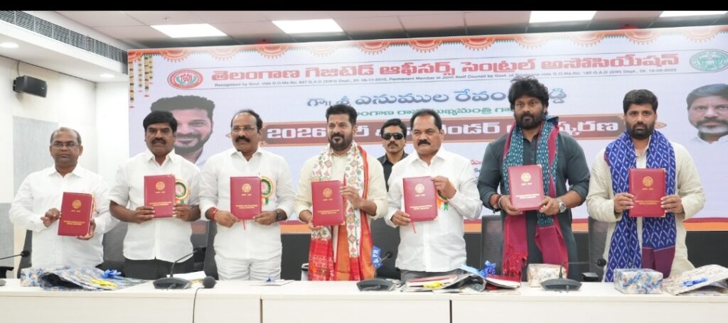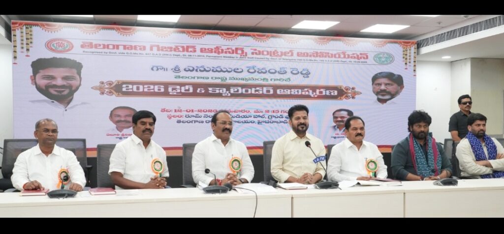👉 డాక్టర్ బీఆర్ అంబేద్కర్ రాష్ట్ర సచివాలయంలో తెలంగాణ గెజిటెడ్ ఆఫీసర్స్ సెంట్రల్ అసోసియేషన్ రూపొందించిన 2026 డైరీ, క్యాలెండర్ను ముఖ్యమంత్రి సోమవారం ఆవిష్కరించారు.