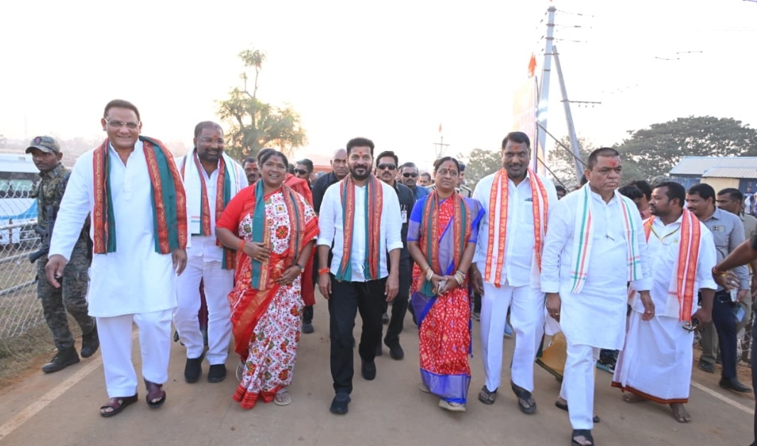 అతిపెద్ద ఆదివాసీ పండుగ మేడారం సమ్మక్క–సారలమ్మ మహాజాతర కోసం జరిగిన ఏర్పాట్లను ముఖ్యమంత్రి రేవంత్ రెడ్డి ఆదివారం సమీక్షించారు. ఉప ముఖ్యమంత్రి మల్లు భట్టి విక్రమార్క, గిరిజన శాఖ మంత్రి లక్ష్మణ్ కుమార్, మంత్రివర్గ సహచరులతో కలిసి బస్సులో జంపన్న వాగు సర్కిల్ వరకు ప్రయాణించి, జాతరకు వచ్చే లక్షలాది భక్తుల కోసం చేసిన ఏర్పాట్లను స్వయంగా పరిశీలించారు.