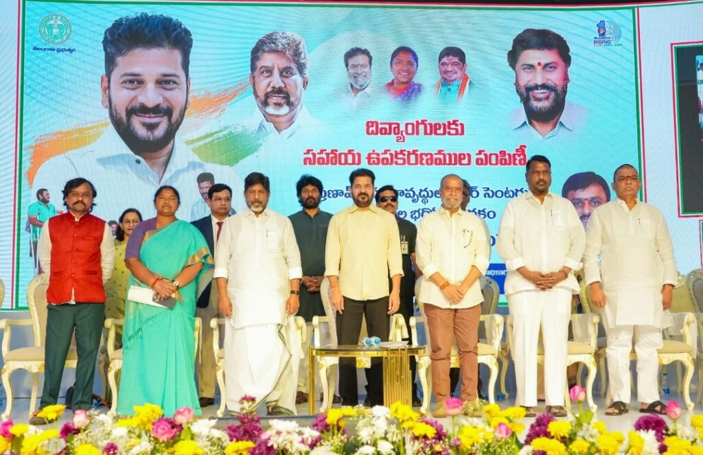 👉 సమాజంలో దివ్యాంగులు ఆత్మగౌరవంతో నిలబడే విధంగా సహాయ సహకారాలు అందించడంలో ప్రభుత్వం మానవీయ కోణంలో పనిచేస్తుందని ముఖ్యమంత్రి రేవంత్ రెడ్డి చెప్పారు. దివ్యాంగులు కుటుంబానికి భారమవుతున్నామని ఆత్మన్యూనతతో ఆందోళన చెందవద్దని, ప్రభుత్వం అన్ని విధాలుగా సహాయం అందిస్తుందని భరోసా ఇచ్చారు.