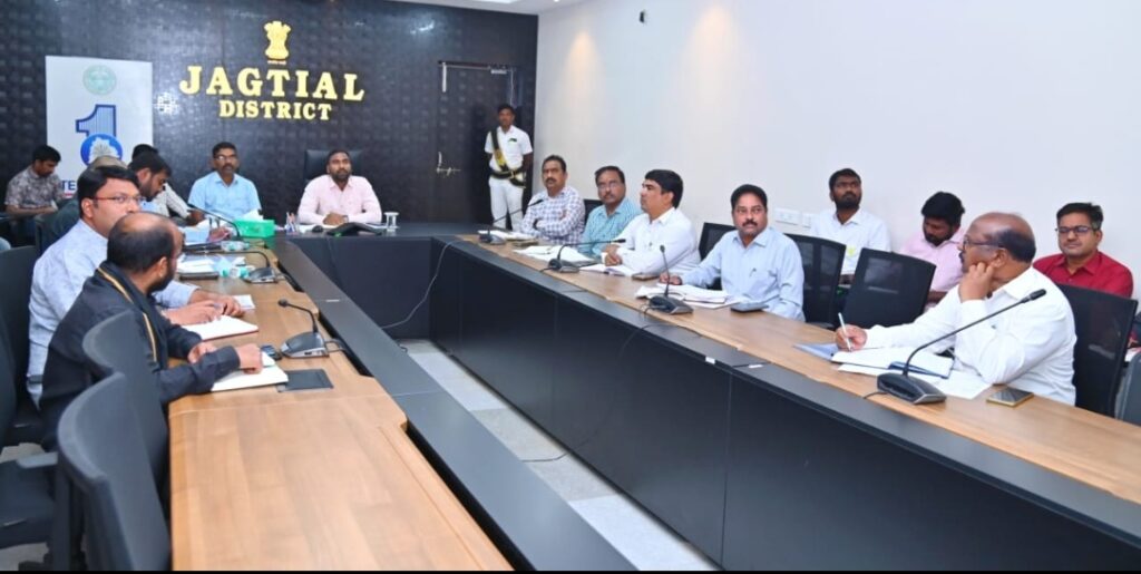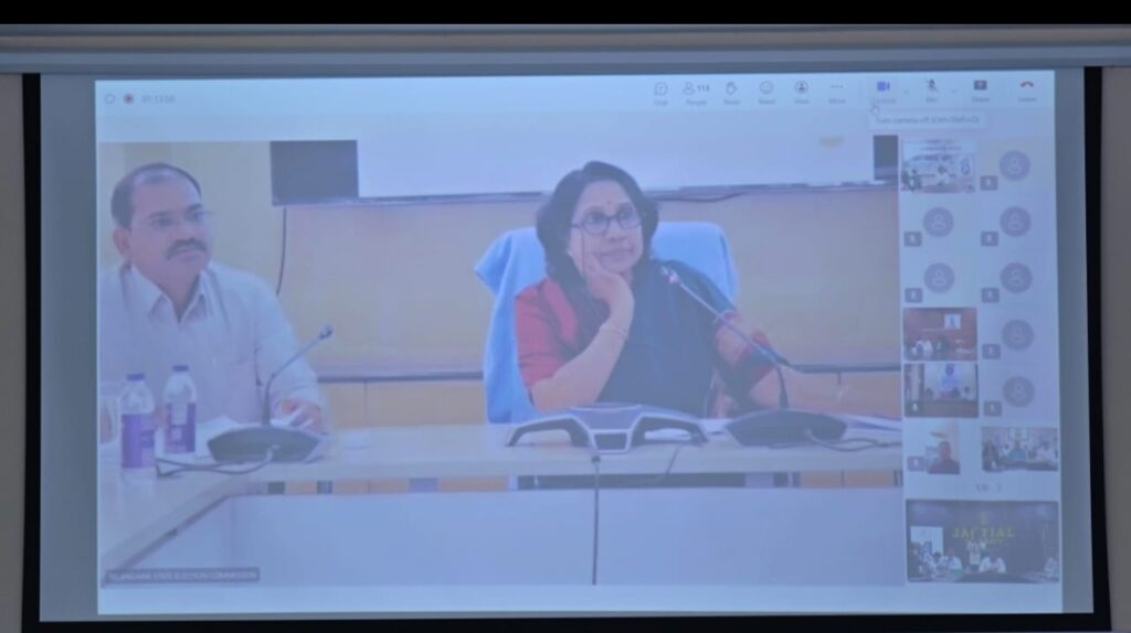 👉 జగిత్యాల కలెక్టరేట్ నుండి కలెక్టర్ బి. సత్యప్రసాద్, జిల్లా స్థానిక సంస్థల అదనపు కలెక్టర్ బి. రాజ గౌడ్ తో కలిసి వీడియో కాన్ఫరెన్స్ లో