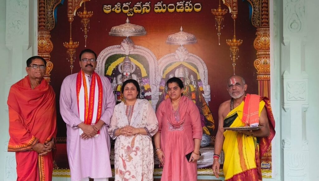 తదుపరి దేవస్థానం పక్షాన శ్రీ స్వామి వారి శేష వస్త్రం, ప్రసాదం, ఇచ్చి సన్మానించారు. దేవస్థాన వేద పండితులు బొజ్జ రమేష్ శర్మ , ముఖ్య అర్చకులు నంబి శ్రీనివాసా చార్యులు పాల్గొన్నారు.