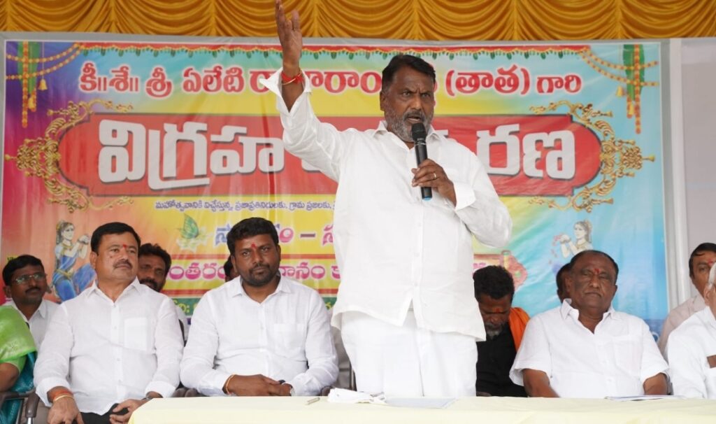 ధర్మపురి నియోజకవర్గం ఎండపల్లి మండలం రాజారాం పల్లి గ్రామంలో ఆదివారం ఏలేటి రాజారాం రెడ్డి, కాంస్య విగ్రహాన్ని మంత్రి అడ్లూరి లక్ష్మణ్ కుమార్ ఆవిష్కరించారు.