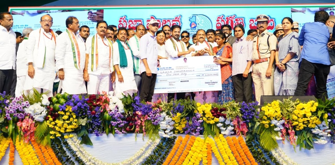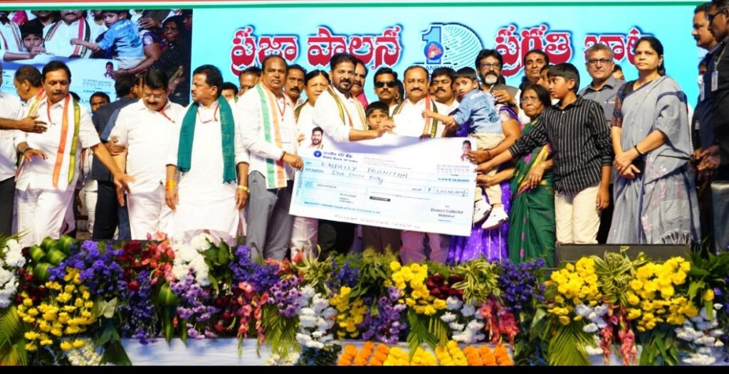 ‘ప్రజా పాలన – ప్రగతి బాట’ కార్యక్రమంలో భాగంగా నిజామాబాద్ జిల్లా డిచ్పల్లి మండలం బర్దిపూర్ గ్రామంలో ఏర్పాటు చేసిన బహిరంగ సభ వేదికగా ముఖ్యమంత్రి వారి కుటుంబ సభ్యులకు ఆ చెక్కును అందించారు.