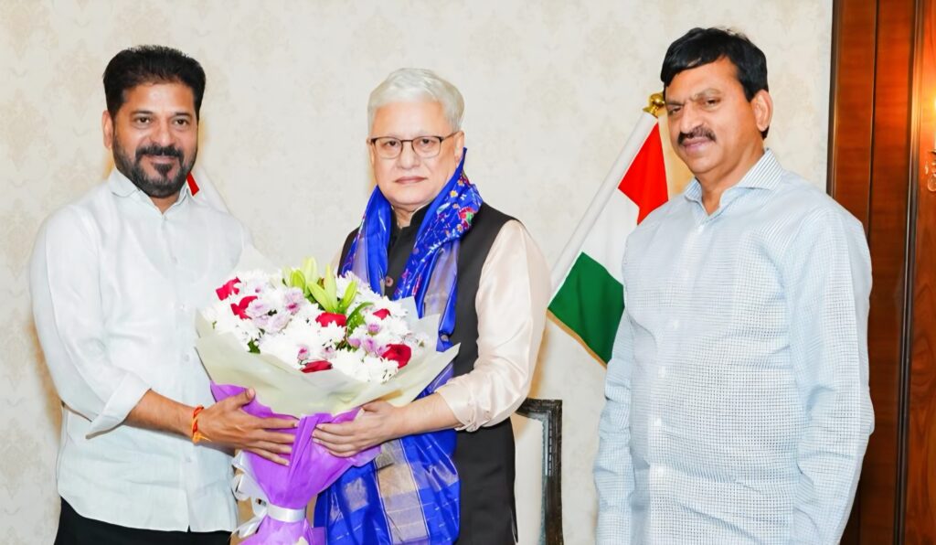 మహారాష్ట్ర గవర్నర్గా బాధ్యతలు స్వీకరించబోతున్న తెలంగాణ గవర్నర్ జిష్ణు దేవ్ వర్మ ను ముఖ్యమంత్రి రేవంత్ రెడ్డి మర్యాద పూర్వకంగా ఆదివారం సాయంత్రం కలిశారు. ముఖ్యమంత్రి మంత్రి పొంగులేటి శ్రీనివాస రెడ్డి తో కలిసి లోక్భవన్లో జిష్ణు దేవ్ వర్మతో భేటీ అయ్యారు.
