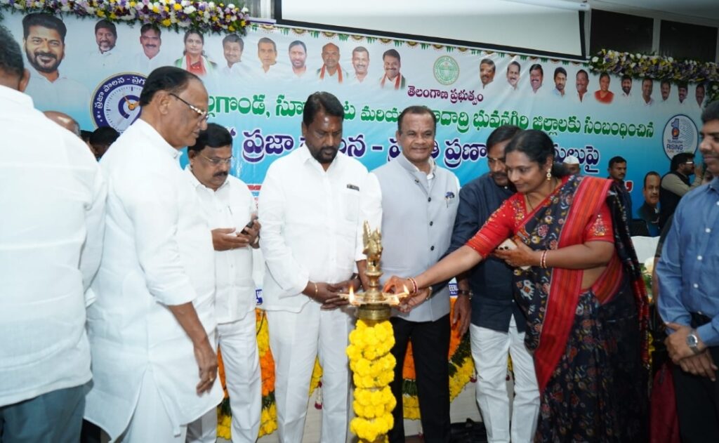 ప్రజా పాలన- ప్రగతి ప్రణాళిక అమలులో నల్గొండ జిల్లాను రాష్ట్రంలో మొదటి స్థానంలో నిలపాలని నల్గొండ జిల్లా ఇన్ చార్జీ మంత్రి, రాష్ట్ర ఎస్సీ ,ఎస్టీ సంక్షేమ శాఖ మంత్రి అడ్లూరీ లక్ష్మణ్ కుమార్ అన్నారు. శనివారం నల్గొండ జిల్లా కేంద్రంలోని ఉదయాదిత్య భవన్ లో ప్రజాపాలన- ప్రగతి ప్రణాళిక పై నిర్వహించిన ఉమ్మడి నల్గొండ జిల్లా సన్నహక సమావేశంలో పాల్గొని మంత్రి అడ్లూరి లక్ష్మణ్ కుమార్ మాట్లాడుతూ…..